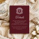Tarjeta De Recepción Elegant Burgundy Monogram Crest Wedding Details