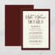 Tarjeta De Recepción Elegant Dark Burgundy Ivory Wedding Details
