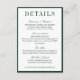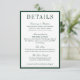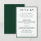 Tarjeta De Recepción Elegant Dark Green Minimalist Wedding Details