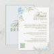 Share all the important information your guests need with this beautifully designed wedding details card. Featuring delicate watercolor blue hydrangea design and elegant typography, this insert provides essential details about your reception, accommodation, and wedding website. Perfectly coordinated with garden, rustic, or floral-themed weddings, this card makes it easy to guide your guests effortlessly.