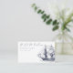 This wedding enclosure card features a vintage illustration of a ship, which you can replace with an image of your wedding venue. Elegant dark blue lettering lays out the date to respond by, QR code, and website URL.