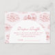 Celebrate a timeless and romantic baby shower with this elegant pink toile design, featuring delicate vintage countryside illustrations in soft blush tones. The refined arch layout creates a beautiful focal point for your event details, blending classic European charm with a modern, feminine aesthetic. Perfect for a chic, storybook-inspired celebration, this design feels both graceful and effortlessly sophisticated—ideal for creating a memorable and stylish gathering.