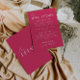 Simple and stylish retro colorful wedding guest info details. With bold raspberry deep pink background and white text layout with whimsical wordings. All the info are customizable as website, transportation, accommodation . Grab it along with other products from this classy hand made retro wedding suite.
