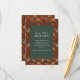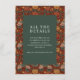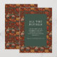 This elegant wedding enclosure card features a symmetrical layout with a central dark green panel surrounded by an intricate floral border. The design showcases a rich color palette of deep reds, maroons, and accents of orange, pink, cream, and blue-green, creating a vintage-inspired aesthetic. Stylized flowers like peonies and roses, along with small bird illustrations, frame the text beautifully, which is presented in a clean serif font for readability. Perfect for adding a touch of sophistication to your wedding suite, this card conveys a formal and refined mood, ideal for special occasions.