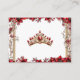Tarjeta De Recepción Elegant Red Golden Tiara Floral Quinceañera