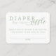 Complete your baby shower suite with this elegant sage green diaper raffle card featuring delicate illustrated botanicals and graceful script details. Designed to coordinate perfectly with the matching invitation, this card includes a soft floral pattern backer and a clean space for guests to write their name. A beautiful and cohesive way to invite guests to participate in a diaper raffle while keeping your event theme stylish and refined.