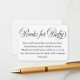 This stylish baby shower enclosure card features a classic white background, elegant black calligraphy script, and typography. Simply edit the template with your details and choose paper options. Coordinating items are available in our store or the design collection.
