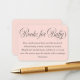 This stylish baby shower enclosure card features a blush pink background, elegant dark grey calligraphy script, and typography. Simply edit the template with your details and choose paper options. Coordinating items are available in our store or the design collection.