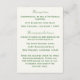 Reverse features your text in the traditional format for a wedding enclosure card and is also displayed against a pale-cream background. Available in a variety of colors, this design coordinates with the "Two Hearts Catholic Wedding Suite (Forest Green)" collection. All text is customizable.