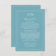 Tarjeta De Recepción Elegante azul retro simple con Boda monograma