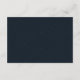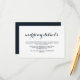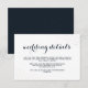 Elegante tarjeta de detalles de boda de color azul oscuro y de fondo blanco con delicados puntos metálicos en la parte delantera y trasera.