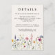 Aumente el encanto de su boda de primavera o verano con nuestra elegante tarjeta de detalles de Boda de flores silvestres, adornada con brillantes flores silvestres de acuarela y frondosas hojas en una paleta de rosa, amarillo, morado, azul y verde. Como complemento de nuestra invitación a la boda, esta elegante adición garantiza que todos los huéspedes se queden informados de los detalles esenciales del boda. Con la esencia de la belleza de la naturaleza y la sofisticación moderna, nuestra elegante tarjeta de detalles de crema de flores silvestres es la elección perfecta para parejas que buscan una armoniosa mezcla de tradición e innovación en su día especial.