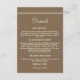 Eleva tu papelería boda con esta tarjeta personalizada Minimal Taupe Boda Details, diseñada para la pareja moderna que aprecia la simplicidad con el estilo. Con un diseño minimalista y alineado, una tipografía de color crema de moda y un tipo de letra de guión, esta tarjeta está elegantemente ajustada en un fondo de color profundo clásico. Perfecto para un boda sencillo y moderno, ofrece un espacio para compartir con sus huéspedes los detalles esenciales del alojamiento y la información boda. Una elección atemporal y refinada para complementar su suite boda.