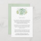 Boda botánico detalles tarjeta de gabinete con un ramo de suculentos acuarelas verdes y sus detalles en un suave tipo de letra gris. En la parte trasera hay un lavabo de acuarela verde. Los suculentos añaden un gran elemento natural al diseño. Estas tarjetas son una excelente manera de proporcionar información a sus huéspedes sobre su boda, como ropa, alojamiento, direcciones, transporte, itinerario de fin de semana y sitio web de bodas. Estas tarjetas son perfectas para un boda del desierto en primavera o verano.