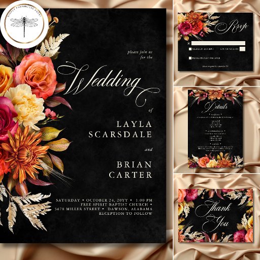 Elegant Black Vibrant Boho Floral Script WeddingDiseñado por Kathe Santillo