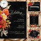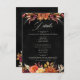 Tarjeta De Recepción Elegante Boda de escritura floral de Boho negro vi