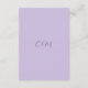 Tarjeta Lilac Reception con letras de lavanda oscuras en guiones y fuentes serif dentro de un marco sencillo en la parte delantera y la pareja en la parte posterior