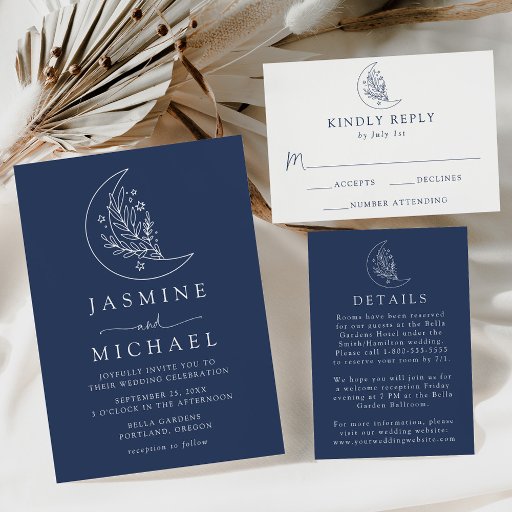 Elegant Botanical Moon and Stars Navy WeddingDiseñado por Jessica Letterman