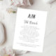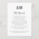 Invitación formal tradicional monogramada a la boda detalles de la tarjeta del recinto con un guión de tipografía de estilo antiguo vintage en blanco y negro simple. La tarjeta es totalmente personalizable - todos los colores se pueden cambiar, tanto en el texto como en el fondo.