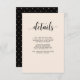 Esta elegante y moda tarjeta de información boda para huéspedes presenta un suave fondo de color negro con una moderna tipografía negra.