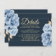 Tarjeta De Recepción Elegante Boda floral azul de Midnight