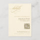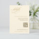 Esta elegante tarjeta de detalles de boda dorado y crudo cuenta con caligrafía lujosa acompañada de un texto sencillo para un ambiente refinado. Diseñado para una comodidad moderna, incluye un código QR para que los huéspedes puedan escanear fácilmente y acceder a más información sobre su boda. Una combinación perfecta de elegancia y practicidad intemporal, que le aporta un toque sofisticado a su papelería boda.