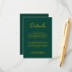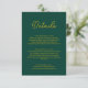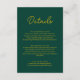 Esta elegante tarjeta de detalles de boda verde y dorado es perfecta para una boda moderna. el diseño simple presenta caligrafía dorada elegante sobre un fondo verde.