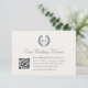 Elegantes tarjetas de recinto para bodas con una foto personalizado y una simple corona de laurel enmarcando las iniciales de la pareja. Inspirado en las invitaciones de los años 20, combina la formalidad clásica con el estilo moderno, utilizando un tipo de letra serif tradicional, un guión de caligrafía vintage y un arreglo limpio. Personalice la plantilla con los nombres de la pareja, el monograma y la dirección del sitio web, junto con un código QR, e invite a sus invitados a RSVP en línea y visite su sitio web boda. También puede personalizar del color de fondo mediante la herramienta de edición de diseño. Colores impresos: azul marino muy oscuro y marfil, blanco roto. Compra la colección para encontrar artículos de papelería para bodas y artículos de venta en línea.