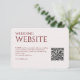 Tarjeta de cierre de sitio web boda con código QR. Diseño centrado en líneas limpias, tipografía minimalista y una paleta de colores coordinando con la mayoría de las colecciones de artículos de papelería boda. ❀ ❀ disponible en una selección de colores de fondo modernos. ❀ ❀ totalmente personalizable y personalizable fácil. Sin embargo, por favor contacte para obtener ayuda en la personalización o personalización para que se ajuste a sus deseos. O bien, para ayuda en la creación de productos relacionados para crear su suite de papelería boda perfecta. Estamos aquí para ayudar y para crear tu papelería boda perfecta.