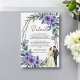 Esta elegante tarjeta acuática floral boda es perfecta para un boda moderno. El diseño romántico presenta un elegante marco floral acuático con un ilustracion de novia y novio y una caligrafía negra sobre un fondo blanco.
