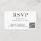 Clásica tarjeta de gabinete RSVP de boda blanca y negra tradicional con "RSVP" en elegante tipografía serif. Ingresa la dirección URL de tu sitio web boda para crear un código QR escaneado para que tus invitados puedan escanear a RSVP en línea y obtener detalles adicionales del boda, como alojamiento e instrucciones. En el reverso aparece tu foto, nombres y fecha de boda.