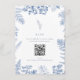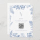 Tarjeta De Recepción Elegante Código QR de Boda Floral Azul Francés