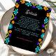 Comparte información importante de los bodas con estilo con esta elegante tarjeta de gabinete de detalles del Boda Fiesta. Decorado con vibrantes flores de inspiración mexicana, en audaces tonos rojos, rosas, amarillos y naranjas, el diseño aporta un encanto festivo a tu celebración, manteniendo al mismo tiempo un estilo refinado y sofisticado. Una tipografía elegante y un diseño limpio garantizan que los detalles como el alojamiento, las direcciones o el código de vestimenta son claros y están bien presentados. Perfecto para las parejas que quieran combinar el encanto cultural con la elegancia atemporal en todos los elementos de su suite boda.
