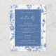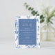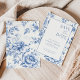 Tarjeta De Recepción Elegante Floral Toile De Jouy Azul Blanco