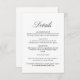 ¿Busca el toque final perfecto para tus elegantes invitaciones minimalistas a la boda? No busque más que nuestra tarjeta de gabinete de detalles del boda. Con un elegante guión negro y letras clásicas sobre un fondo blanco limpio, esta tarjeta es perfecta para bodas formales. Además, puede personalizar los colores del texto y el fondo para que coincidan perfectamente con el tema y la papelería boda. No dejes que los detalles de tu boda pasen desapercibidos - ¡pide hoy tu tarjeta de gabinete y completa el aspecto de tus invitaciones!