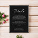 Esta elegante tarjeta de gabinete con detalles en boda blanco y negro es perfecta para un boda moderno. el diseño es sencillo y elegante, con una caligrafía blanca sobre un fondo negro.