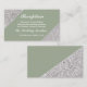 Elegante purpurina plateado moderno en Sage Green White Script Tarjeta de Gabinete