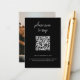 Elegante tarjeta QR Code Photo Black Wedding RSVP . El diseño presenta un enfoque minimalista moderno con código QR y escritura blanca en la parte delantera y tu foto boda en la parte trasera. Personalízalo con tu información. Ver otros productos coincidentes de esta colección.
