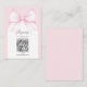 Elegante blanda rosa Rubor Bow Bridal Shower Registry QR código Tarjeta de gabinete