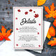 Esta elegante tarjeta de gabinete de detalles de boda en otoño es perfecta para un boda moderno de otoño. El diseño es sencillo, con hojas en caída burdeos y una tipografía elegante en negro y borgoña sobre un fondo blanco.