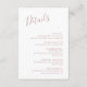 Tarjeta de gabinete simple Boda con "Detalles" en un guión manuscrito elegante en la parte superior izquierda junto con la información de los invitados en la esquina inferior derecha. Todos los elementos de diseño son de color rosa rosa polvoriento y pueden cambiarse en la herramienta de edición de diseño. La letra a mano de moda añade un toque romántico a este diseño minimalista.