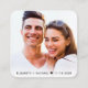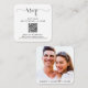 Elegante tarjeta de recinto cuadrado RSVP de boda con "rsvp" en un guión elegante con swashes. Ingresa la dirección del sitio web de tu boda para crear un código QR para que los clientes puedan escanear en línea a RSVP. La parte trasera muestra su foto con sus nombres y fecha de boda junto con un corazón.