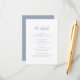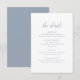 Tarjeta de gabinete boda clásica con un diseño sencillo que incluye el encabezado en un guión tradicional junto con los detalles en azul polvoriento. Esta sofisticada y elegante tarjeta de boda es ideal para un boda formal en primavera o invierno.
