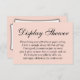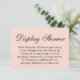 Si estás hospedando una ducha sin regalo para una futura novia, esta bonito, una tarjeta simple podría ser la elección para ti. Utilizando un tipo de letra de guión tradicional, añadí un encabezado que dice "Display Shower" en la parte delantera, y "Gifted with Love from:" en la parte posterior. El campo de plantilla se ha creado para ofrecer instrucciones a los clientes que no cumplan con su presente; por favor, no dude en cambiar la redacción si fuera necesario. Todos los tipos de letra y colores se pueden modificar según se considere oportuno.
