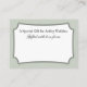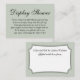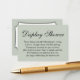 Si estás hospedando una ducha sin regalo para una futura novia, esta bonito, una tarjeta simple podría ser la elección para ti. Utilizando un tipo de letra de guión tradicional, añadí un encabezado que dice "Display Shower" en la parte delantera, y "Gifted with Love from:" en la parte posterior. El campo de plantilla se ha creado para ofrecer instrucciones a los clientes que no cumplan con su presente; por favor, no dude en cambiar la redacción si fuera necesario. Todos los tipos de letra y colores se pueden modificar según se considere oportuno.