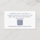 Nuestra elegante tarjeta de información boda azul y blanco muestra un diseño delicado, perfecto para su día especial. Con un moderno tema azul, esta tarjeta incluye un código QR que enlaza con el sitio web de su boda. Personaliza esta carta romántica con los detalles de tu sitio web en sofisticados guiones azul marino, adornados con floraciones decorativas y un solo corazón. El anverso de la tarjeta refleja las letras azules de la moda, mostrando los nombres de la pareja comprometida con dos floridos decorativos, cada uno con un solo corazón. Este lado también resalta su futura fecha de boda. Hay varias configuraciones de texto disponibles en este diseño de conjunto de invitaciones. Para preguntas o solicitudes de personalizados, utilice el botón "MENSAJE" situado en la parte inferior de este listado o póngase en contacto con invitationsuites@gmail.com.