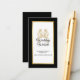 Proporcione a sus huéspedes todos los detalles de su boda en su sitio web con esta elegante tarjeta de gabinete que incluye escritura moderna, texto negro que incluye caballitos de mar artísticos y marcos metálicos de oro en la parte delantera de la tarjeta. Un fondo negro de coordinación está en el frente y en la parte posterior.