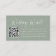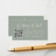 Facilite a los huéspedes la búsqueda de más información sobre su boda y RSVP en línea con estas tarjetas web bodas con código QR. Las tarjetas del recinto boda incluyen "Sitio web Boda" que se muestra en caligrafía blanca manuscrita con un fondo verde sabio. Personalice la tarjeta con la dirección del sitio web de su boda e instrucciones para los huéspedes utilizando las plantillas de texto proporcionadas. En la parte posterior de la tarjeta del sitio web del boda se muestra un ilustracion de arte de línea blanca de una luna, adornado con estrellas brillantes y un frondoso follaje botánico, todo ello sobre un fondo verde sabio.