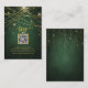 Elegante Sparkling Gold String Lights con guión moderno en la tarjeta RSVP Wedding de fondo verde con código QR. Celebra tu día especial con este elegante y hermoso diseño para embellecer tu ocasión especial. Todos los textos están preorganizados para que puedas personalizarlos fácil y rápidamente con tus propios detalles.