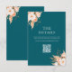 Tarjetas de gabinete boda modernas con elegantes acentos florales de caída boho, diseño tipográfico minimalista sobre fondo de color verde azulado.